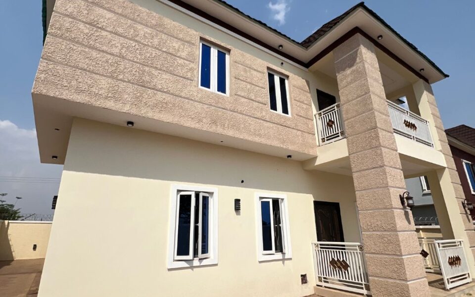 A newly built and well-finished 4bedroom fully detached House with 2rooms detached BQ, offering modern Interiors and high quality finishes. Nestled in a serene and secure environment for comfortable living.